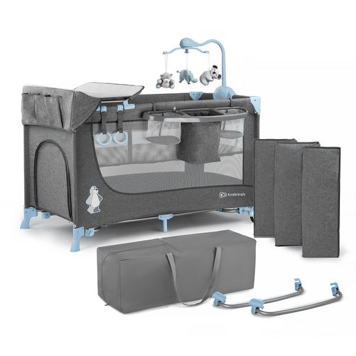 Découvrez ce lit parapluie Joy avec accessoires de Kinderkraft. Grâce à ses nombreux avantages et accessoires, ce lit bébé dévient un véritable "centre d'opérations" pendant vos voyages. Il est muni d'un système de pliage et de dépliage rapide avec une double protection contre le pliage involontaire. Grâce à son plancher réglable sur deux hauteurs, le lit parapluie Joy convient aussi bien aux nourrissons qu'aux enfants un peu plus grands.