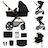 L'ensemble comprend tout ce dont vous avez besoin : housse de pluie, moustiquaire, adaptateur de siège auto, chancelière, porte-bouteille et panier de courses spacieux. La capuche extra-large avec filtre UPF 50+ protège du soleil, tandis que les panneaux en maille assurent une ventilation optimale lors des journées chaudes.