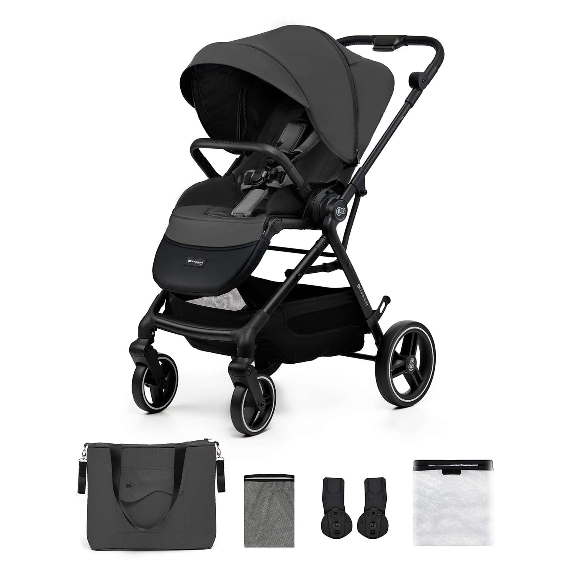 - Accessoires inclus : Moustiquaire, chancelière, film imperméable, porte-gobelet, sac à langer, adaptateurs pour siège auto