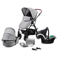 La poussette multifonctions MOOV 3 en 1 combine les avantages d'une nacelle, d'une poussette et d'un siège-auto. C'est un modèle qui vous servira pendant de nombreuses années : de la naissance de votre enfant jusqu'à ce qu'il pèse 22 kilos ! La poussette MOOV a reçu une évaluation positive de la part de l'institut allemand indépendant Stifftung Warentest. Elle est équipée, entre autres, d'une capote profonde et extensible et d'une poignée en éco-cuir avec une large plage de réglage. Elle est facilement maniable, ce qui la rend idéale pour les promenades en ville. Toutes les roues sont gonflables et robustes, en plus les roues sont dotées du système de rotation à 360 degrés et du verrouillage pour aller tout droit.