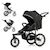 Matériaux : cadre en acier, tissu polyester, roues gonflables (avant 12”, arrière 16” avec fibre de verre).
