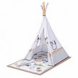 La tente tipi a 2 fenêtres avec des rideaux en tissu, afin que le parent puisse voir librement l'intérieur et voir ce que fait le bambin. Les arcs sont fait d'une éponge souple, grâce à laquelle l'enfant sera en sécurité même lors des ébats les plus fous. TIPPY est un tapis unique - il apportera beaucoup de joie à chaque enfant. L'ensemble comprend également des jouets pour les plus jeunes: un orque en peluche avec un anneau de dentition, une hirondelle en peluche avec des rubans et un hochet avec une feuille en peluche, un miroir, deux jouets bruissants sur le tapis.