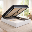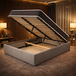Le lit coffre se distingue par son design moderne et minimaliste, s'intégrant facilement dans tous les styles de chambre. Sa structure robuste en placage MDF renforcé et son revêtement en tissu polyester assurent une excellente durabilité et un toucher agréable.