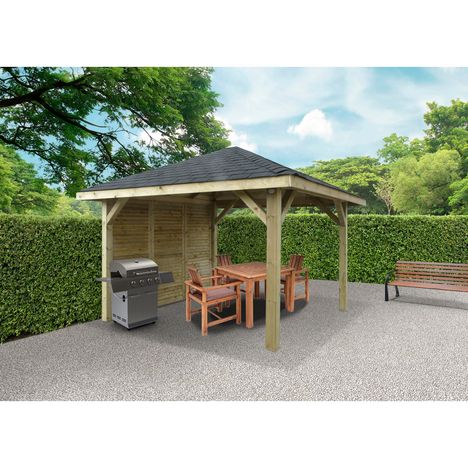 kiosque en bois de 3,47x3,47 m avec une paroi et shingles noirs