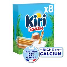 Kiri® Goûter 8 barquettes, c'est du fromage au bon lait frais pasteurisé et à la crème onctueuse 100% français avec ses gressins de blé tendre facile à emporter pour un goûter rigolo et gourmand ! Kiri® Goûter c'est un snack enfant riche en calcium et en céréales pour une journée pleine d'énergie.