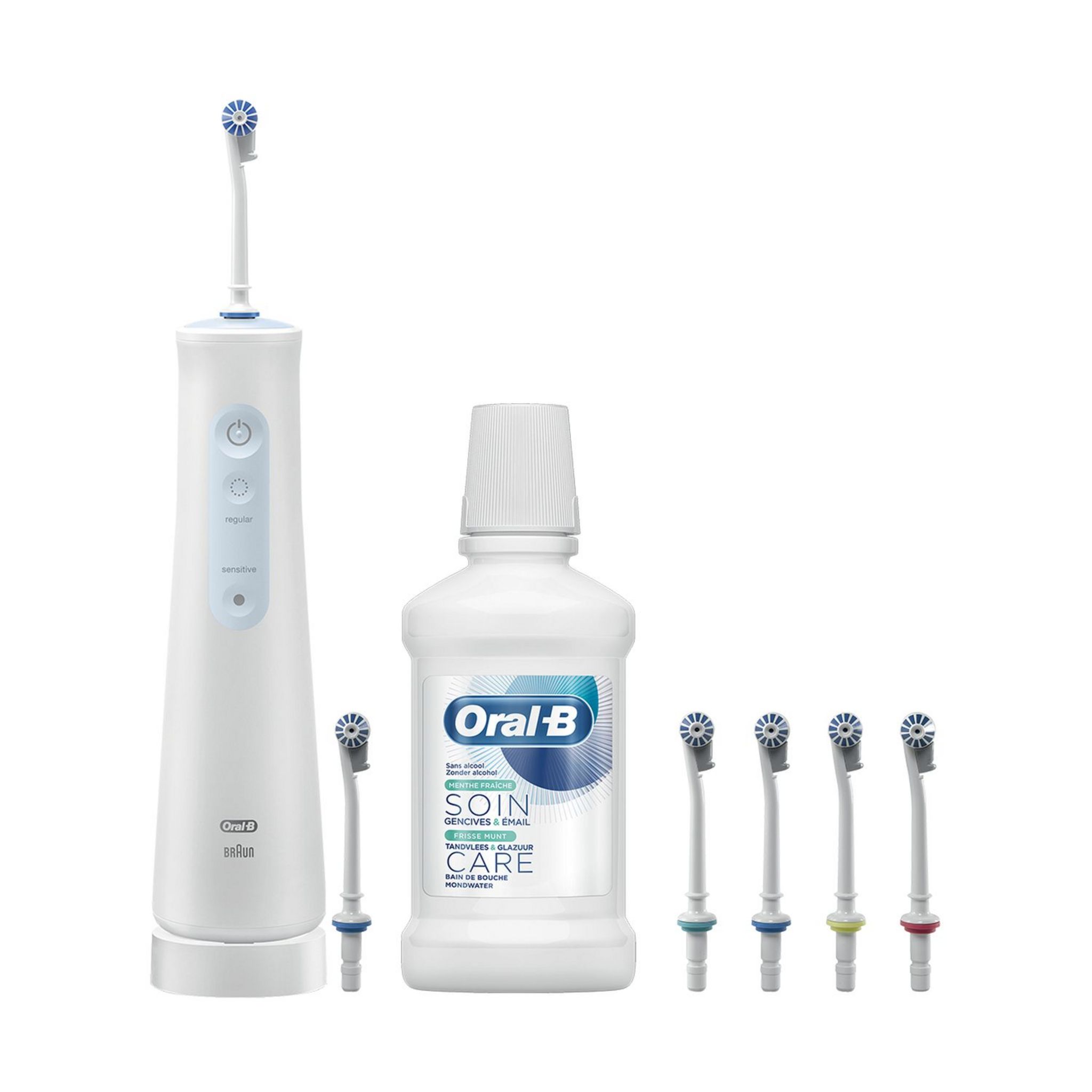 Le Kit jet dentaire AQUACARE sera idéal pour une routine bucale quotidienne réussie. Le kit contient un hydropulseur Aquacare, une canule Oxyjet, 1 bain de bouche, une recharge de 4 canules et un chargeur. Il dispose de deux intensités de nettoyage : normal ou douceur ainsi que 2 types de jets : ciblé ou rotatif. La technologie Oxyjet enrichie à l'eau avec des microbulles permet d'intensifier l'action de nettoyage.