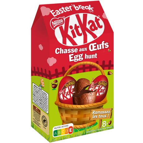 Fêtez Pâques avec KITKAT ! Retrouvez ces délicieux moulages en forme d'oeuf dont le format est idéal pour une chasse aux oeufs réussie ! Craquez pour sa recette aux éclats de céréales croustillants et au bon chocolat au lait. HAVE A BREAK, HAVE A KITKAT* *Un break, un KITKAT.