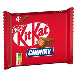 La barre chocolatée KITKAT CHUNKY est la barre idéale pour tous ceux qui aiment faire un bon break* ! Une gaufrette croustillante à la texture légère dorée au four et un délicieux chocolat au lait (68%). Déballez votre KITKAT CHUNKY, coupez-en un morceau et dégustez votre break* ! La portion repère est le produit entier. KITKAT est la première marque internationale à atteindre l'objectif d'achat de 100% de cacao produit de façon durable, dans le cadre du Plan Cacao NESTLE. La marque KITKAT est née en Angleterre en 1935. Depuis, KITKAT est devenue une barre iconique avec 6 milliards de barres vendues dans le monde par an. HAVE A BREAK, HAVE A KITKAT**. *Une pause. **Un break, un KITKAT.