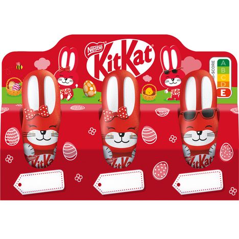 Fêtez Pâques avec ces petits lapins KITKAT ! Craquez pour sa recette aux éclats de gaufrettes croustillants et au bon chocolat au lait. Le format idéal à offrir, partager ou à consommer soi-même. HAVE A BREAK, HAVE A KITKAT* *Un break, un KITKAT. Avec le Plan Cacao, KITKAT contribue à soutenir une production plus durable de cacao.