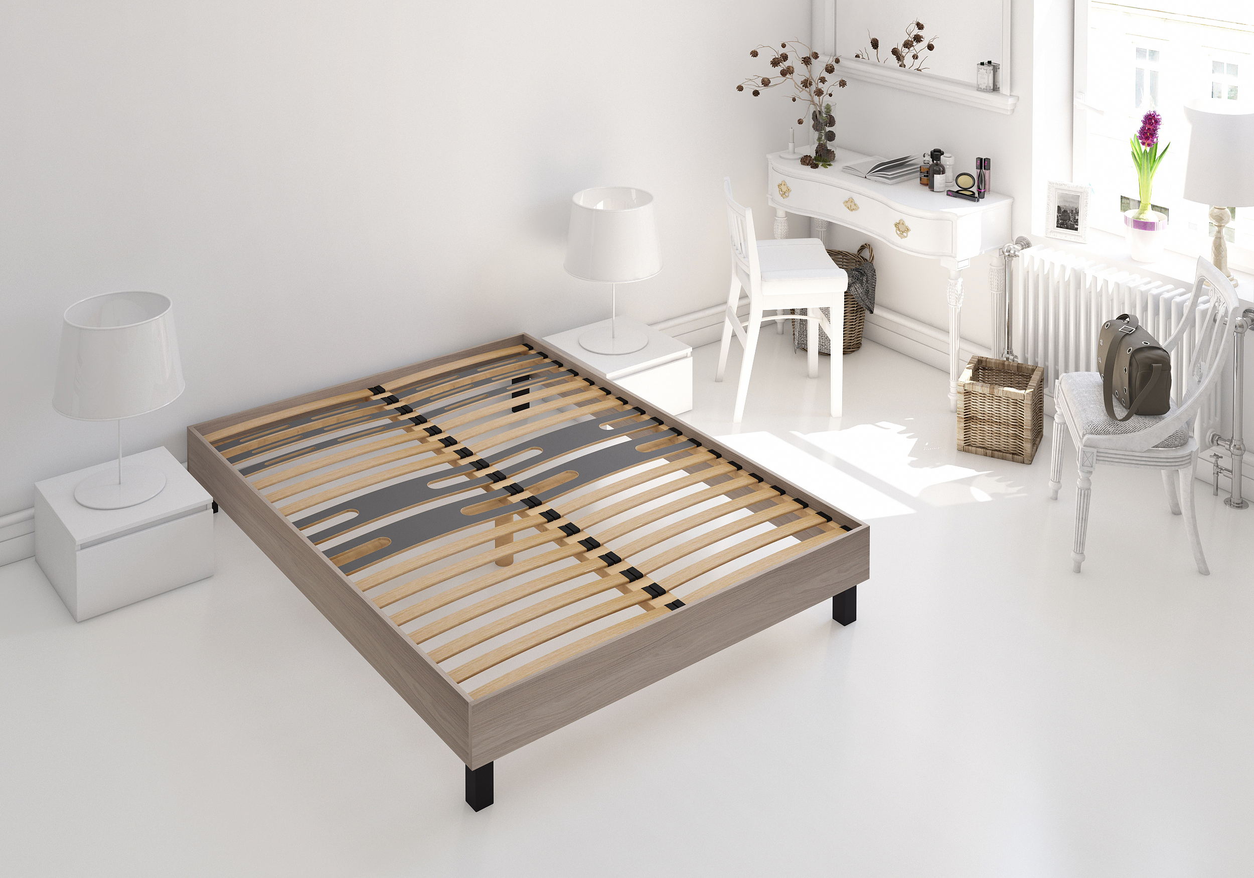 Kit Sommier 18 lattes. Fabrication française. 5 zones de confort afin de soulager les points de pression. Panneau mélaminé de 19cm de hauteur. Conforme à la norme de sécurité et de solidité EN1725. Livré avec jeu de 4 pieds. pied central supplémentaire pour les tailles 140 et 160. Débord d'encadrement afin d'assurer un excellent maintien du matelas. Assemblage sans outil ! Livré en carton individuel. Notice de montage.