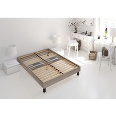 Très pratique ce sommier est livré en kit, il se monte et se démonte facilement. Avec un entourage décor bois chêne clair, il est doté de 18 lattes apparentes et avec un débord d'encadrement afin de bien maintenir le matelas en place. De plus, il est fabriqué en France.