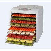 Kitchen Chef KYS-333D Déshydrateur fruits et légumes 9 plateaux Kitchen Chef KYS-333D est un appareil idéal pour conserver vos aliments de manière naturelle en préservant leur valeur nutritive.Les aliments sont sains, diététiques, délicieux et conservent leurs vitamines et leur goût.L?appareil permet de sécher: fruits, légumes, herbes, champignons, plantes, fleurs, viandes, volailles et poissons en profitant toute l?année en abondance de produits hors saison à prix raisonnable.Nourriture facile à emporter en voyage, camping, pique-nique, pour le goûter, encas, pour les sportifs (randonnées)Simple d?utilisation : Thermostat variable de 35 à 70°C (+ ou ? 5°C) par tranche de 5°C, utilisation programmable par tranche de 30 min. jusqu?à 19 heures 30 minutes.Le séchage est effectué par une ventilation chaude . La circulation de l?air chaud permet un séchage homogène des aliments.Plateaux : 9 grands plateaux amovibles (33x30cm) d?une surface de séchage de 990cm2 par plateau soit au total 8910 cm2.