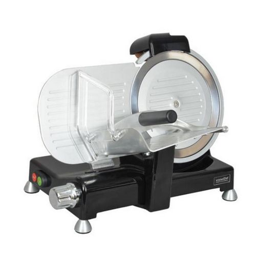 Kitchen Chef KCPTR250N Trancheuse électrique Kitchen Chef KCPTR250N est une trancheuse idéale pour toutes vos découpes de charcuterie, fromage et légumes durs !- Lame de 25.5 cm de diamètre en acier inoxydable trempé de haute qualité et protection intégrale- Corps en fonte d'aluminium laqué noir et