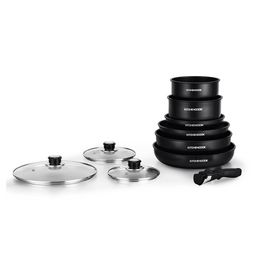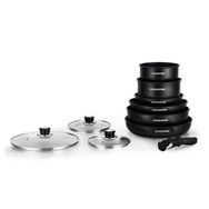 POELES 20CM/24CM/ 28CM + CASSEROLES 16CM/18CM + SAUTEUSE 26CM + 3 COUVERCLES + 1 POIGNEE AMOVIBLE