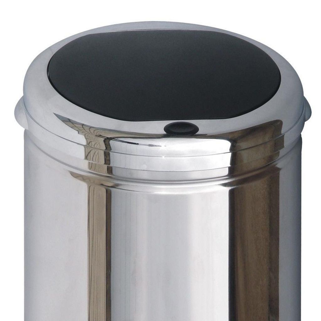 Couvercle pour poubelle push rond modèle TOKYO Chrome et noir Ouverture par simple pression.