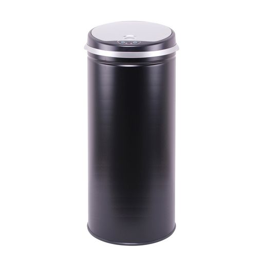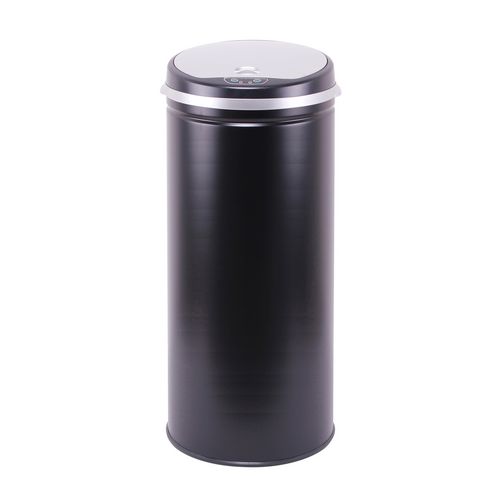 Poubelle automatique coloris noir, corps en inox 0,4mm. Livrée avec cerclage pour sac poubelle La poubelle fonctionne avec un système infrarouge et vous évite tout contact avec le couvercle de la poubelle. Pratique et hygiénique, le couvercle s'ouvre et se referme automatiquement lorsque vous passe