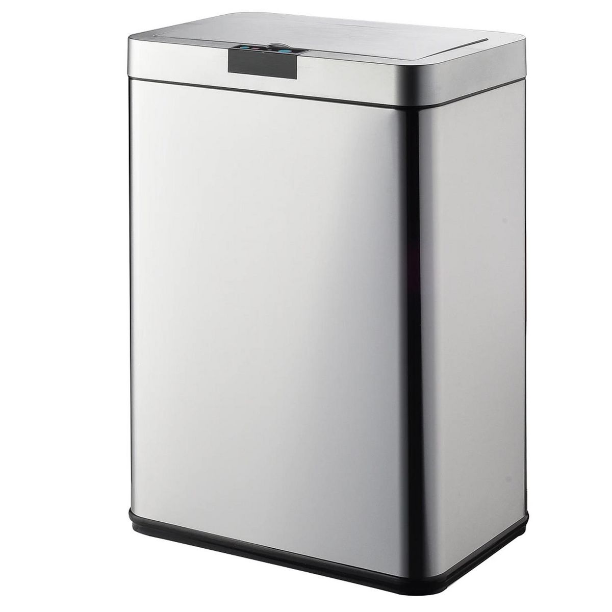 Poubelle avec couvercle à ouverture automatique mains libres et look moderne et élégant.