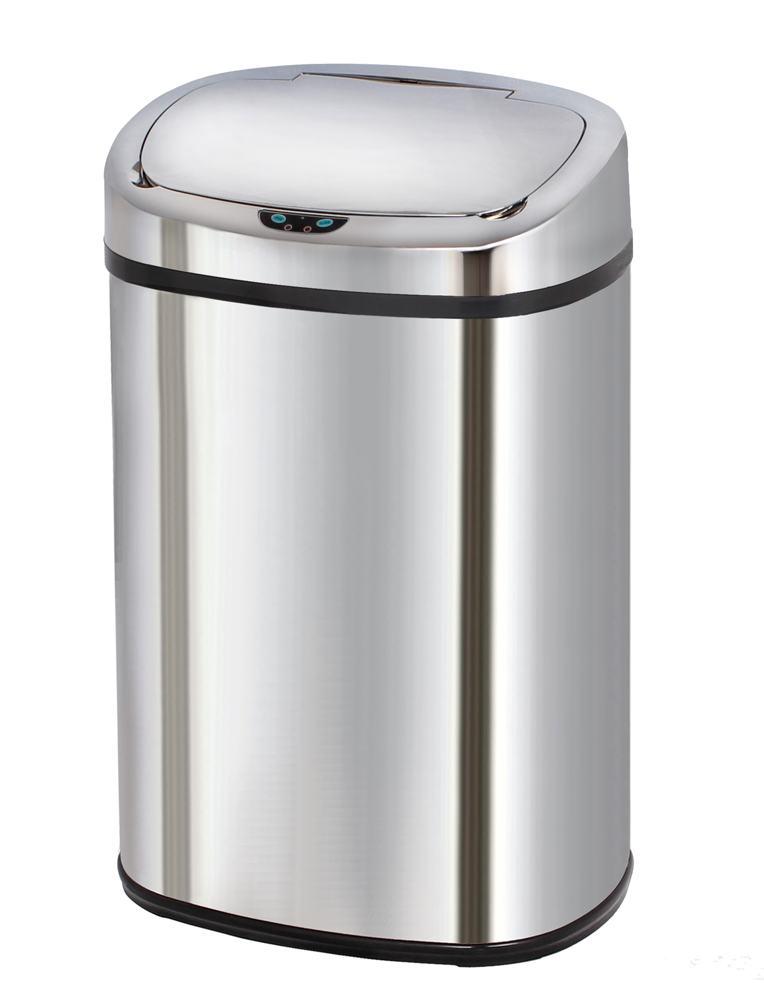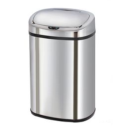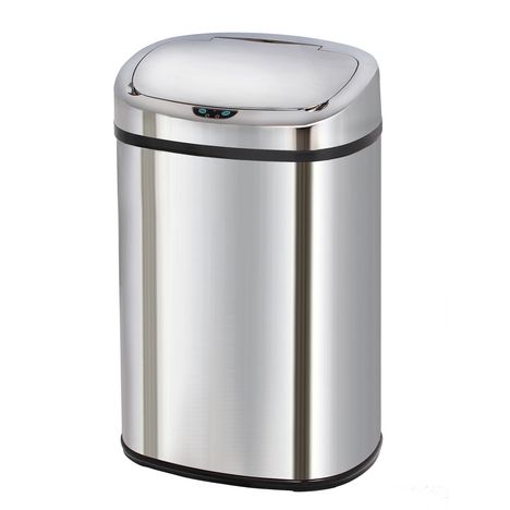 Poubelle automatique 58 L en acier inoxydable et son nouveau design carré pour une ouverture plus large ! Capteur sensoriel afin de vous permettre d'ouvrir la poubelle d'un simple mouvement. La poubelle est vendu avec un cerclage plastique qui permet de maintenir le sac poubelle ainsi qu'un anneau pour la protection des sols. Couvercle en ABS. Fonctionne avec 4 piles LR20 (non fournies). Bouton ON/OFF (pour maintenir le couvercle ouvert). Le couvercle est à nettoyer avec un chiffon humide.