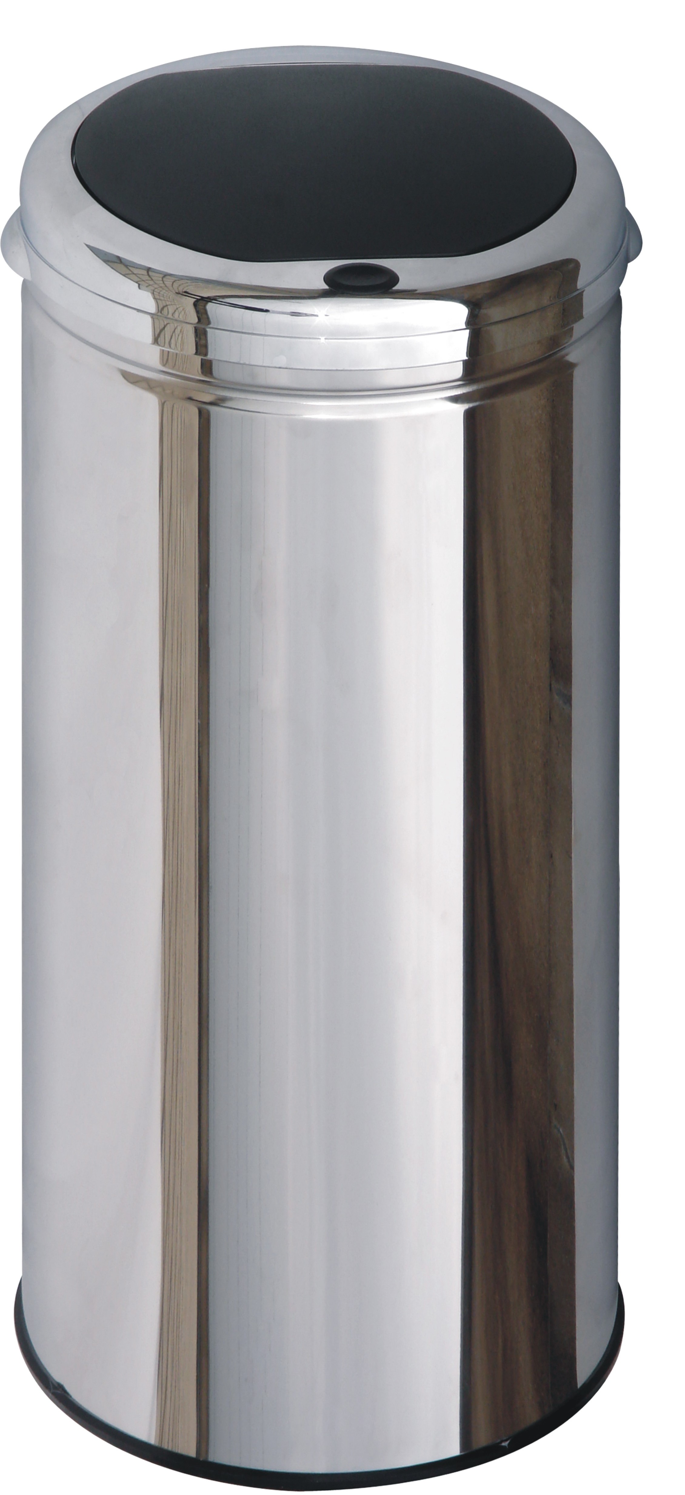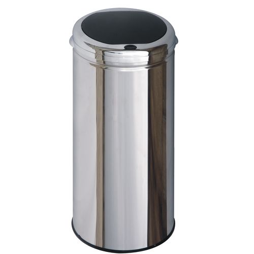 Poubelle one touch, une simple pression suffit pour ouvrir la poubelle. Corps en inox 0,4mm, couvercle en ABS chromé. Finition poli miroir