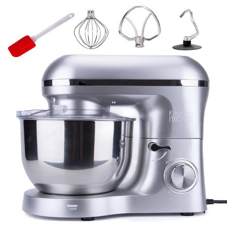 Kitchen Move BAT-1518-N Robot Pâtissier, Robot Pétrin Pratique, Robot Cuisine Multifonctions, Pétrisseur Professionnel Stable et Rapide avec 6 Vitesses et Bol 5.5L Solide 1500W avec Batteur, Crochet, Fouet et spatule.Facile à pétrir avec un moteur à mouvement planétaire puissant de 1500W qui assure