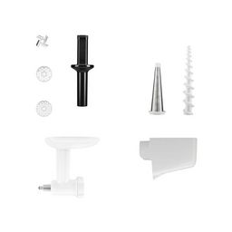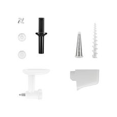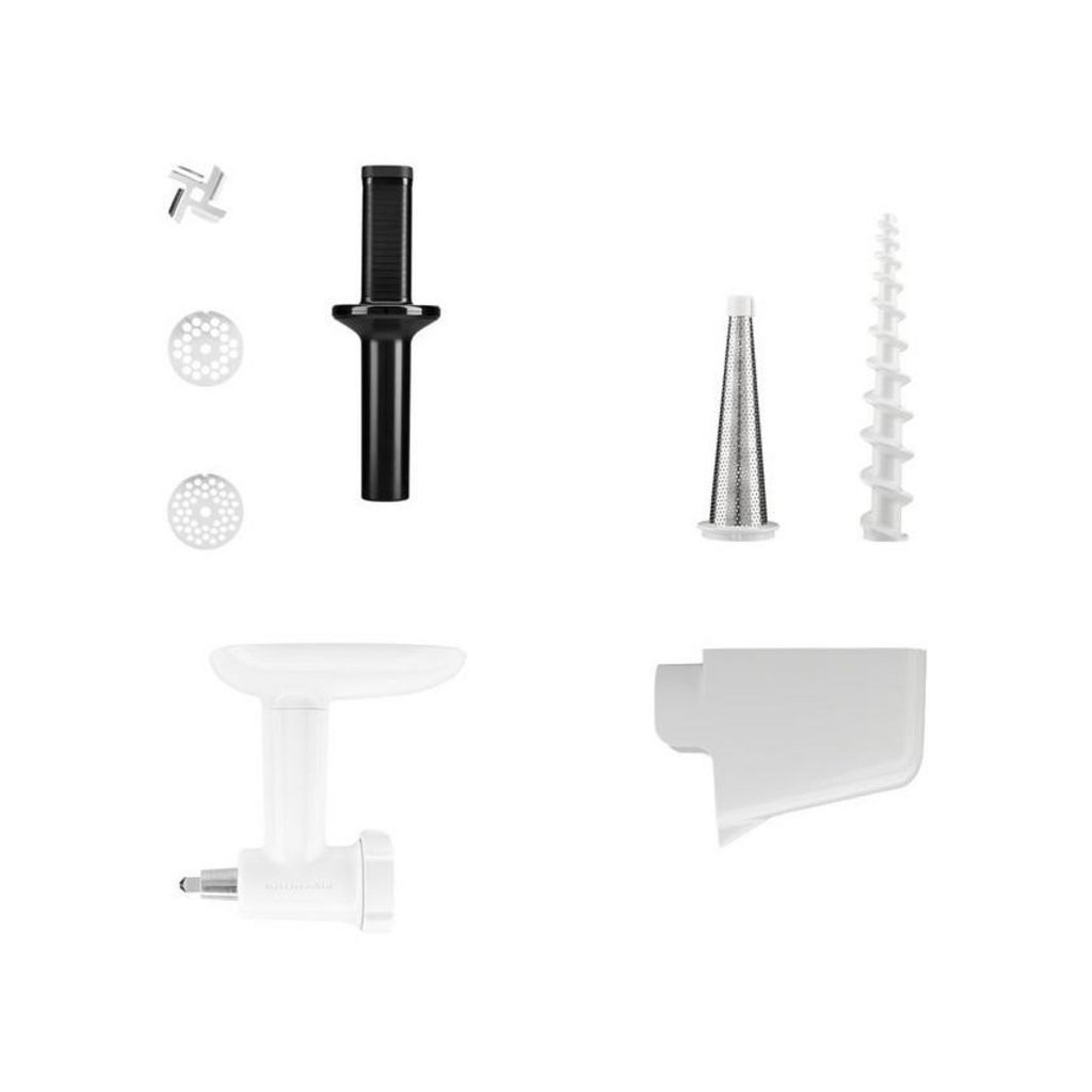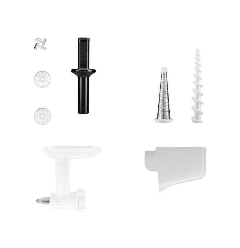 Kitchenaid 5KSMFVSFGA Hachoir et passoire à fruits et légumes 5KSMFVSFGA pour robot pâtissier multifonction à tête inclinable KitchenAid.Conception améliorée du hachoir :Transformez vous-même vos ingrédients pour préparer des plats sains et frais. Hachez tout à la perfection : des légumes pour préparer de savoureux falafels ou de la sauce, ou encore de la viande crue pour réaliser des hamburgers maison.Livré avec des grilles de hachage fines et épaisses :Facilite la préparation de tout un éventail de plats frais et créatifs.Poussoir :Pour acheminer plus facilement les ingrédients vers la lame et les grilles.Conçu exclusivement pour fonctionner avec tous les modèles de robot pâtissier multifonction KitchenAid :Se fixe simplement au moyeu électrique multifonctions alimenté par le robot. Hachage simple et rapide.Passoire à fruits et légumes conçue spécialement pour fonctionner avec le hachoir (5KSMFGA) :Pour vous aider à préparer confitures, sauces, purées pour bébés et plus encore. Élimine toutes les pelures, pour des fruits ou des légumes finement réduits en purée.La passoire comprend un cône tamis et un plateau tamis qui s?adaptent sur le hachoir :Facile à utiliser et facile à nettoyer.Développez votre créativité avec l?accessoire à farcir les saucisses et/ou les plateaux pour aliments :Pour préparer des saucisses maison.