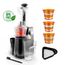 2 sorties : Une sortie plus large pour collecter le jus et une seconde sortie pour collecter la pulpe. Il est fourni avec 2 récipients dont un filtre amovible en acier inoxydable et plastique pour collecter le jus et la pulpe simultanément afin d'obtenir un jus homogène, limpide et sans résidus.