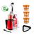 2 sorties : Une sortie plus large pour collecter le jus et une seconde sortie pour collecter la pulpe. Il est fourni avec 2 récipients dont un filtre amovible en acier inoxydable et plastique pour collecter le jus et la pulpe simultanément afin d'obtenir un jus homogène, limpide et sans résidus.
