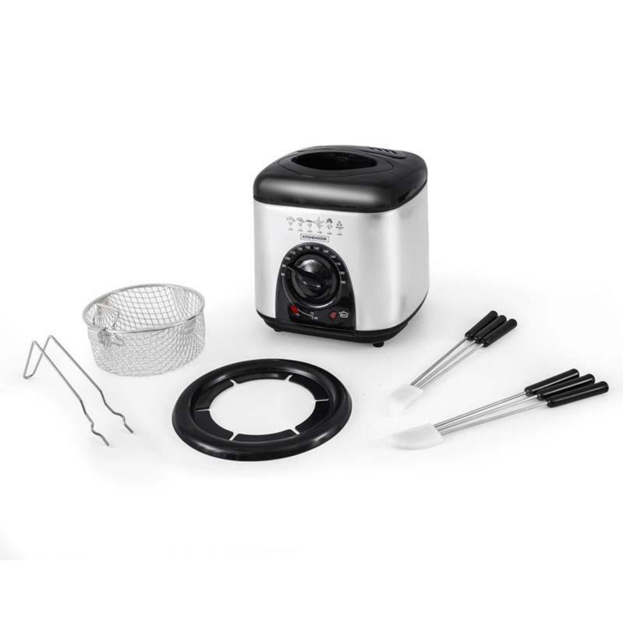 Kitchencook - Friteuse électrique 1l 2en1 - Avec Service à Fondue - Couvercle Avec Fenêtre - Revêtement Antiadhésif