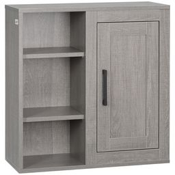 Armoire haute murale de salle de bain ou WC placard 1 porte 3 niches dim. 48L x 20l x 50H cm panneaux particules gris