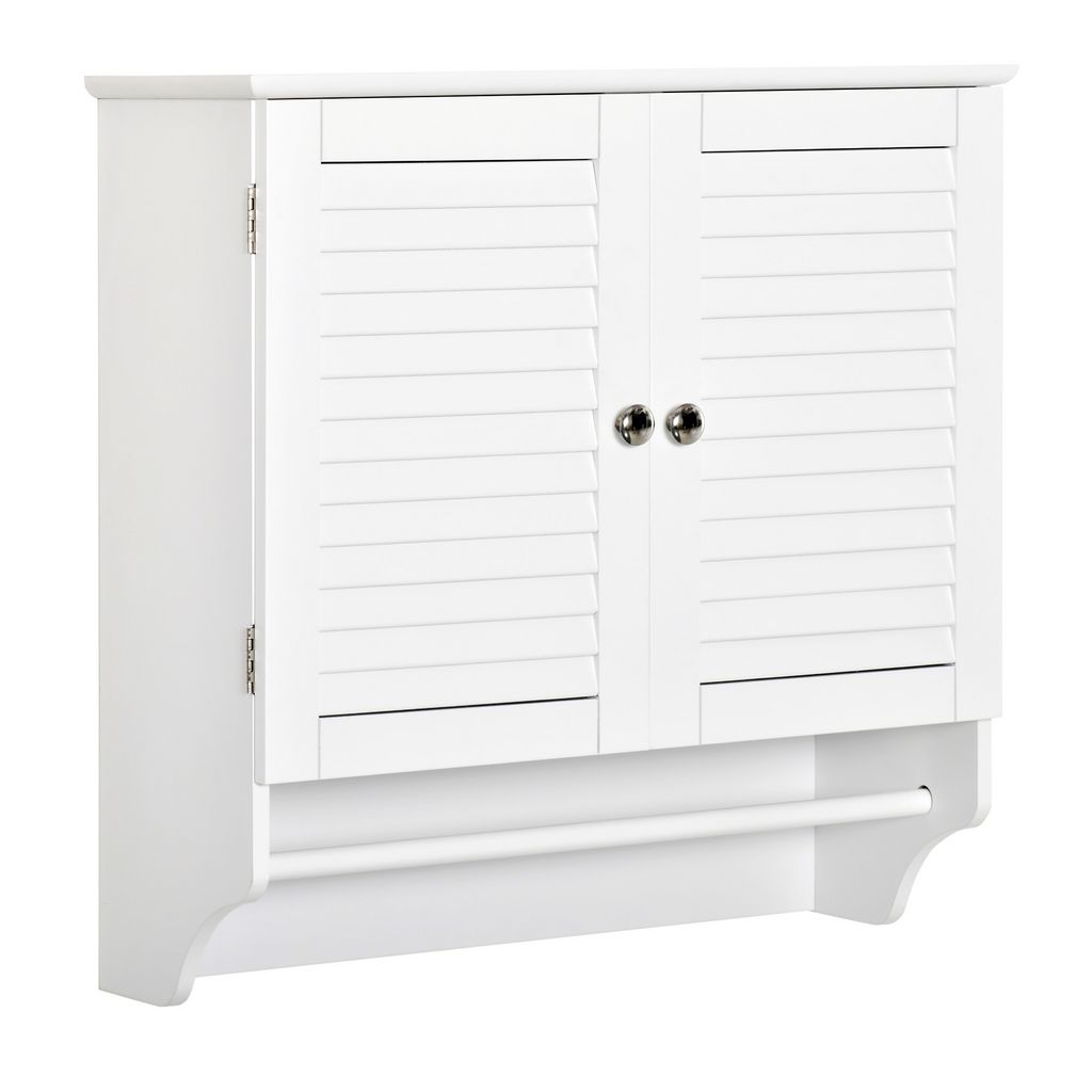 Armoire haute murale salle de bain ou WC - placard 2 portes persiennes avec étagère - porte-serviette - MDF blanc