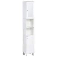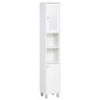 Meuble colonne de salle de bain 2 portes 2 étagères réglables 2 niches miroir piètement poignées métal panneaux blanc