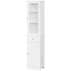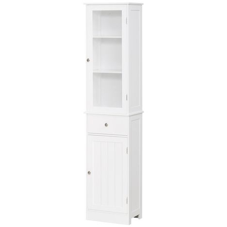 Meuble colonne de salle de bain placard porte acrylique 2 étagères placard porte 1 étagère tiroir MDF blanc