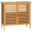 Meuble sous-vasque 2 portes à lattes - dim. 66L x 29l x 61,5H cm - bois de bambou verni