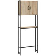 Meuble WC meuble dessus toilettes style industriel 2 portes 2 étagères acier noir aspect chêne clair