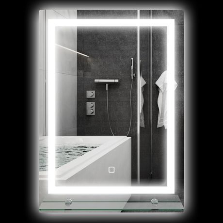 Miroir lumineux LED 20 W interrupteur tactile étagère intégrée 50L x 12l x 70H cm