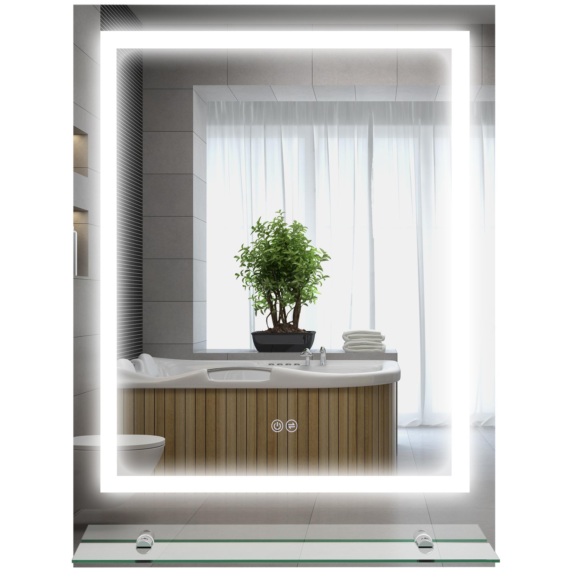 Miroir lumineux LED 43W antibué réglable interrupteur tactile étagère intégrée 60L x 14P x 80H cm