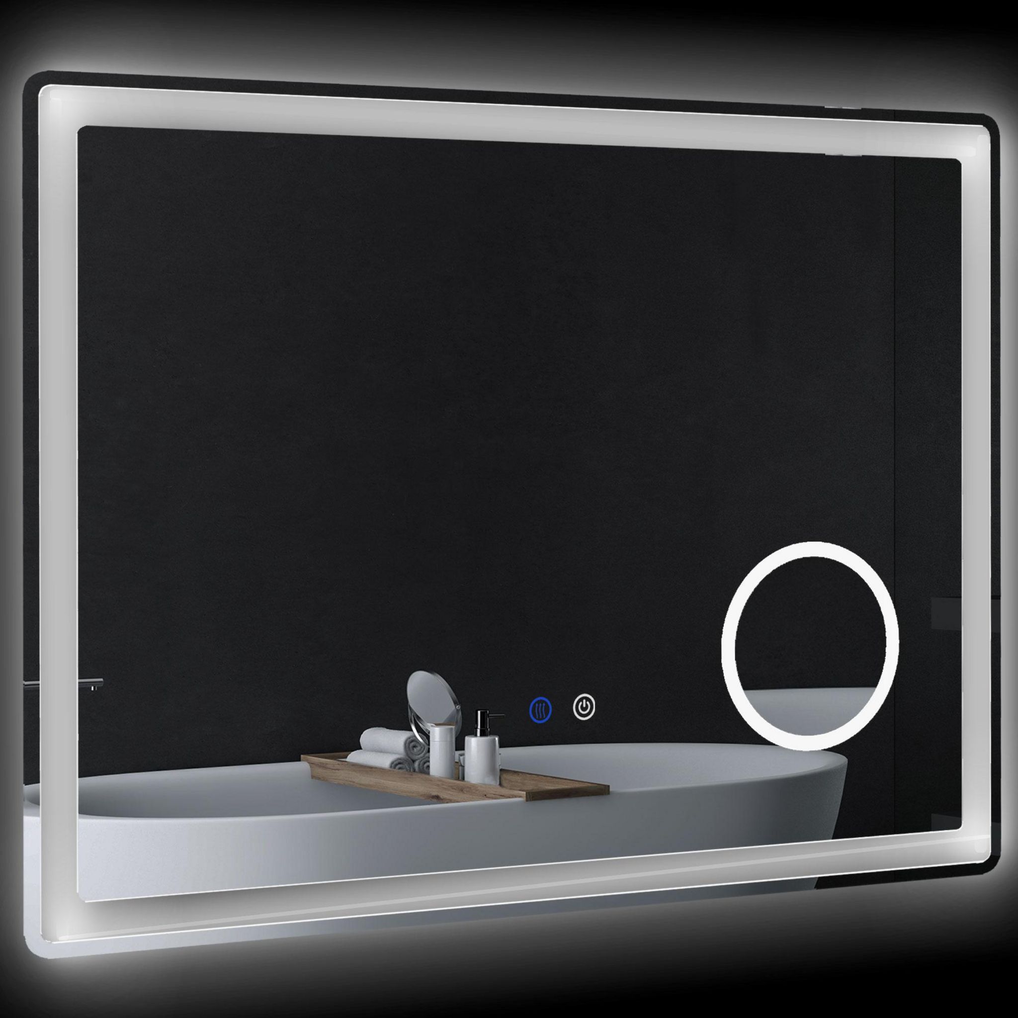 Miroir lumineux LED salle de bain dim. 80L x 60H cm anti-buée grossissant x3 réglable fonction mémoire