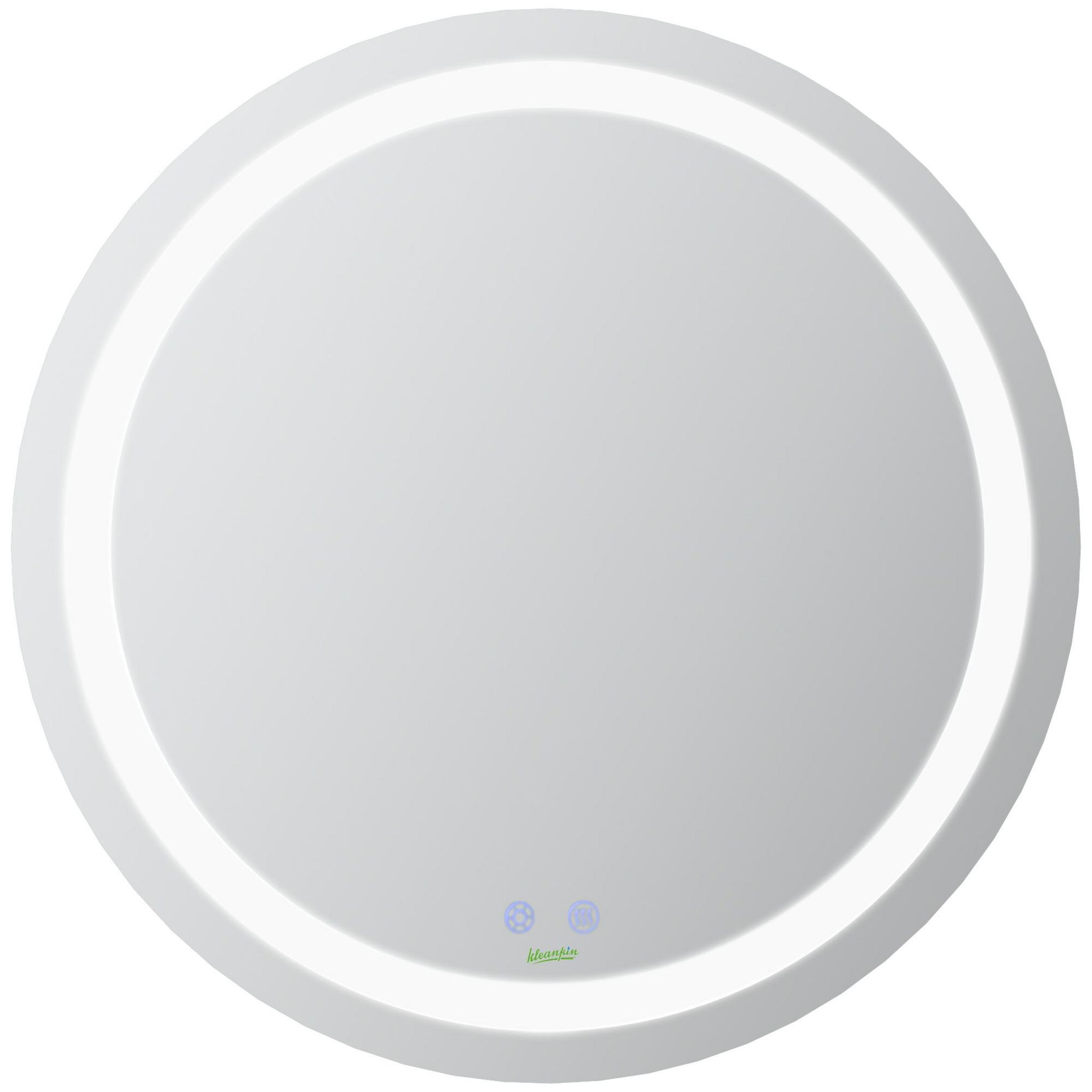 Miroir salle de bain lumineux LED 35 W - dim. Ø 60 x 4H cm - fonction anti-buée, interrupteur tactile, luminosité réglable - alu. verre