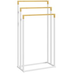 Porte-serviette autoportant 3 barres - dim. 45L x 22l x 86H cm - bois bambou acier blanc