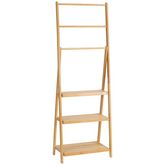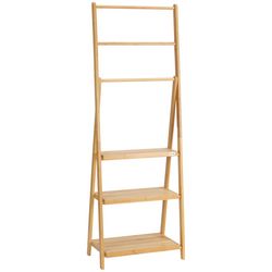 Porte-serviette pliable autoportant - 3 barres, 3 étagères - dim. 53 x 30 x 152 cm - bois bambou