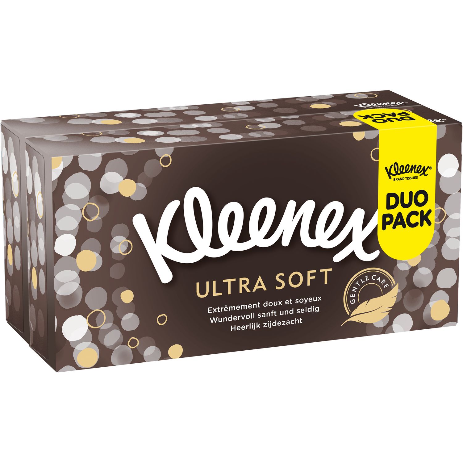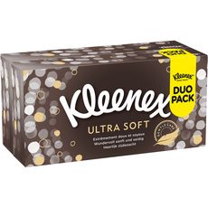 Kleenex® Ultrasoft Boîte P72 x2 (SRP) Kleenex® Ultra Soft, le mouchoir extrêmement doux et soyeux ! Avec Kleenex® Ultra Soft, enveloppez-vous dans un cocon de douceur ! Vous serez immédiatement séduit par la douceur exceptionnelle de ce mouchoir et son aspect soyeux. Avec ses touches dorées, cette boîte résolument glamour deviendra votre objet déco indispensable ! Également disponible en format étuis ouchoirs en papier certifiés FSC (Forest Stewardship Council)