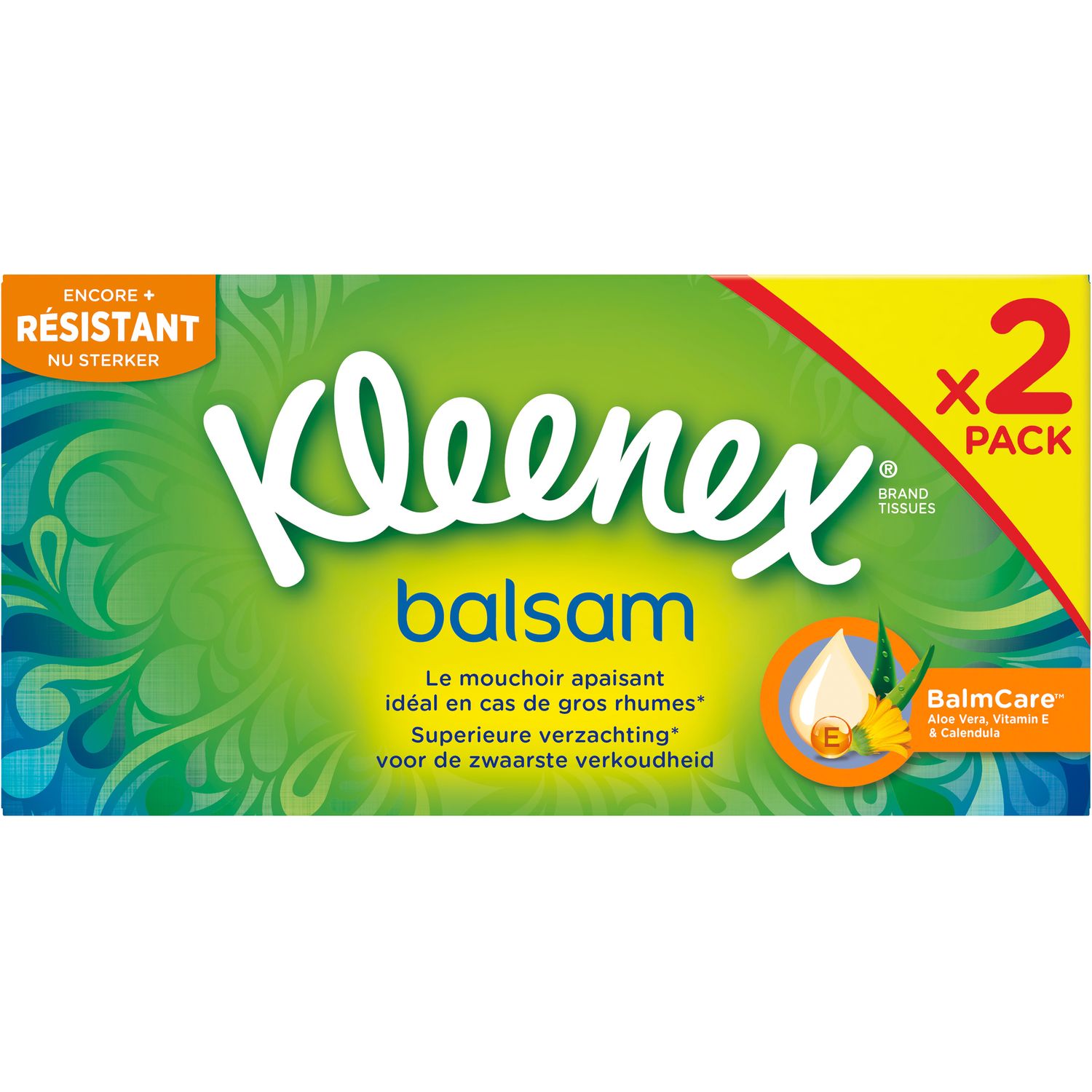 Kleenex® Balsam est le compagnon idéal de votre hiver ! S'il est facile d'attraper un rhume, il est souvent difficile de s'en débarrasser. Avec son baume protecteur, Kleenex® Balsam est le mouchoir apaisant idéal en cas de gros rhumes* (*vs Kleenex® The Original). Son baume protecteur 3 en 1 enrichi au calendula, à l'aloé vera et à la vitamine E apaise, nourrit et protège votre nez et votre peau des irritations. Ces mouchoirs sont testés dermatologiquement et conviennent aux peaux les plus sensibles. Avec Kleenex® Balsam, affrontez l’hiver en toute sérénité ! Également disponible en format étuis ouchoirs en papier fabriqués en France ouchoirs en papier certifiés FSC (Forest Stewardship Council) Kleenex® Balsam Boîte P72 x1