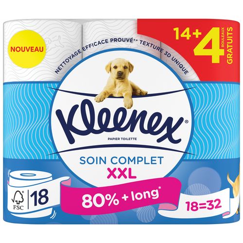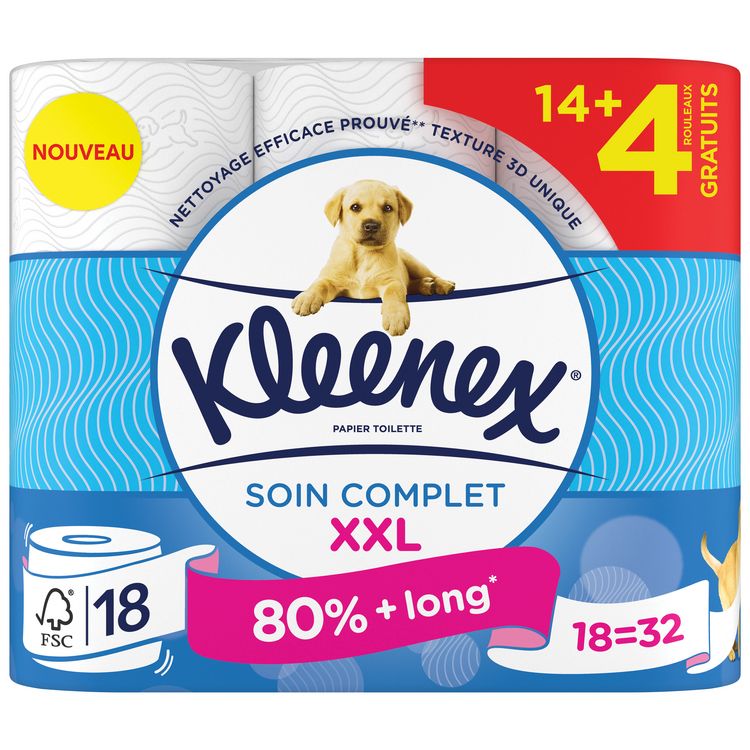 Kleenex® Soin Complet bénéficie d’une texture 3D unique pour un nettoyage efficace en toute confiance.