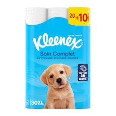 Kleenex® Soin Complet XXL, c'est un rouleau 80% plus long et toujours une texture 3D unique pour un nettoyage efficace (comparé à Soin Complet Classique)Kleenex® Soin Complet XXL bénéficie d’une double épaisseur et d’une texture 3D unique, pour un nettoyage efficace en toute confiance