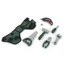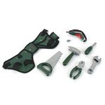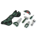 1 ceinture à outils, 1 tournevis, 1 clé à molette, 1 scie, 1 pince et 1 marteau, 2 embouts interchangeables