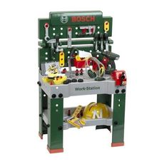 Cet établi BOSCH Work-Station super-équipé est livré avec 81 accessoires dont : -1 tres belle visseuse aux fonctions électroniques réalistes -1 équipement complet comprenant casque de travail, casque anti-bruit, paire de lunettes de travail et paire de gants