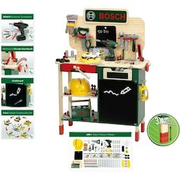 Transformez la chambre des enfants en un véritable atelier avec l'établi en bois Bosch de Klein Toys. Cet établi est idéal pour les petits bricoleurs et est muni de plusieurs accessoires variés pour stimuler leur créativité. Il comprend une visseuse sans fil avec effets lumineux et sonores, une scie