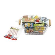 Panier a provisions en métal avec double anse livré avec de nombreuses boîtes d'aliments factices en langue française et avec des marques connues de tous : Baleine, Bonne Maman, Capri-sun, Findus, Knorr, Lactel, Lustucru, etc. Dimensions du panier : 26,5 x 16 x 13,5 cm. Compatible avec les autres articles de notre gamme Shopping Center.