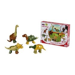 Contient 4 grands dinosaures magnétiques : tricératops, stégosaure, brachiosaure, tyrannosaure. Les différentes parties du corps de chaque dinosaure sont aimantées. Elles s'emboîtent entre elles et se fixent comme par magie. Elles sont aussi interchangeables, de quoi laisser libre cours a son imagin