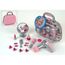 Nombreux autres accessoires : peigne, brosse à cheveux, miroir à pied, produits cosmétiques factices et bijoux de coiffure.